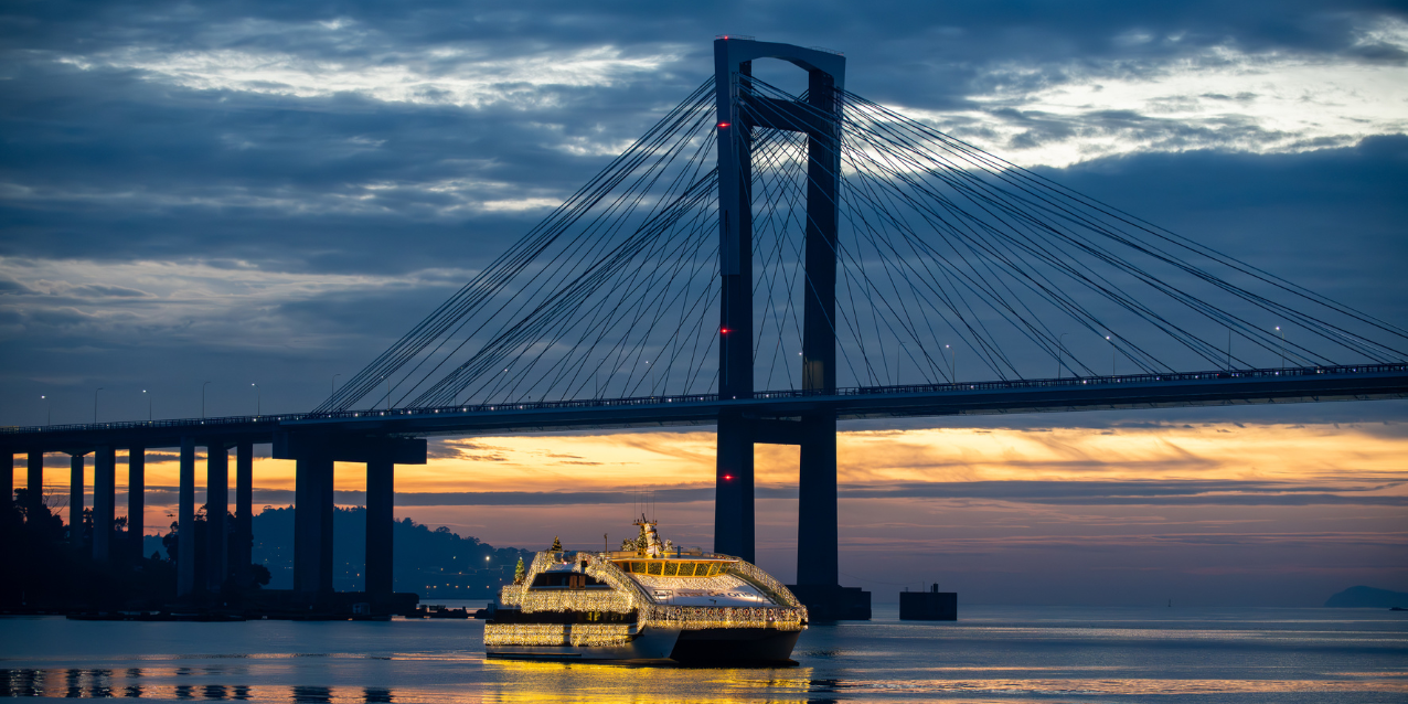 Una de las propuestas más emblemáticas de la naviera son sus giras marítimas con degustación de mejillones, un paseo de hora y media por la ría de Vigo que permite contemplar espacios tan representativos como la costa de Vigo, su puerto pesquero, el monte de A Guía, las villas marineras de Cangas y Moaña, los polígonos de bateas y el estrecho de Rande, pasando por debajo de este emblemático puente, uno de los momentos más esperados de esta ruta. Todo ello acompañado de un guía a bordo que explica el recorrido y el proceso de cultivo del molusco gallego más famoso, el mejillón, que podrán degustar a bordo todos los pasajeros, una oportunidad para saborear uno de los productos estrella de Galicia mientras se descubre la historia marítima de la zona, incluida la famosa batalla de Rande o las incursiones de Francis Drake. En ocasiones, la travesía ofrece además el avistamiento de delfines, convirtiendo la actividad en una experiencia inolvidable.